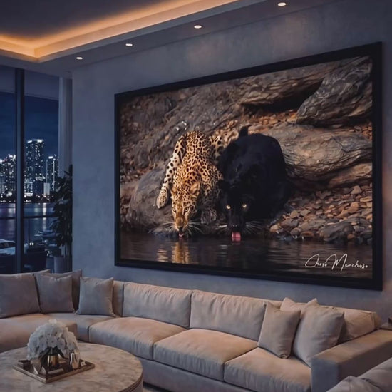 Duality captures the tension between opposing forces, light and shadow, instinct and control, expressed through a moment of stillness between two apex predators.